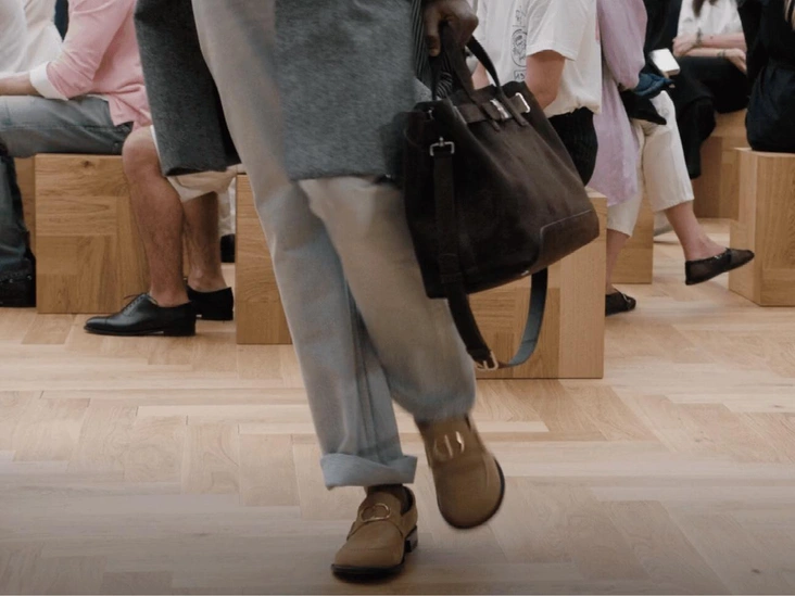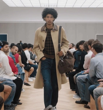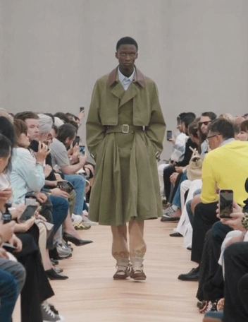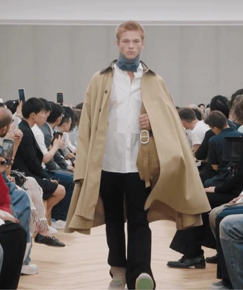 На показе мы увидели пиджаки с выраженной баской, как дань стилю 2010-х, тренчи с акцентом на расклешенном подоле, длинные рубашки, напоминающие туники. И, конечно, сумки — те, что мы раньше могли представить только на женской половине (читайте также: Не только Birkin: алфавит культовых сумок от А до Я).