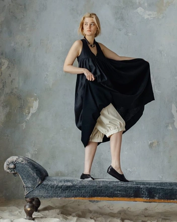Вещи российского бренда Masha Andrianova на городских улицах узнаются безошибочно: несмотря на спокойные натуральные оттенки, они выглядят необычно, даже немного экстравагантно. При этом угадать источник вдохновения основателя марки Маши Андриановой нетрудно — это исторический костюм Русского Севера. Именно об этой дуальности современности и традиционности мы с ней и поговорили.