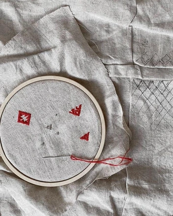 Я сама по себе “зимний” человек – родилась в феврале, мне очень нравится зима, и меня вообще всегда тянуло на север. Юг ассоциируется с буйством цветов, яркими оттенками, а север – это спокойствие, нейтральные тона, это мне очень близко. Именно отсюда пошел интерес к культуре Русского Севера – сначала меня привлекла просто красивая картинка. А когда в конце 2014-го я переехала из Франции в Москву и начала ходить по музеям, видеть вблизи оригинальные исторические костюмы, то стала искать информацию уже целенаправленно. Каждая вещь – это чья-то судьба, она сделана руками и несет энергию мастера, это не может не вдохновлять. И я захотела делать то же самое. С тех пор я постоянно что-то изучаю на тему русского костюма и могу хоть лекцию про рубаху прочитать.