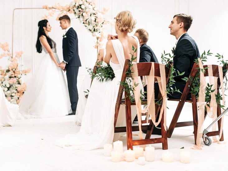 Конечно, всегда возможны исключения, поэтому, если — и только в этом случае это возможно — невеста призвала гостей быть одетыми в белое, подберите себе светлый наряд, но в иных случаях никогда не надевайте что-либо в белой гамме в особенный день других людей. Правила дресс-кода это настрого запрещают.