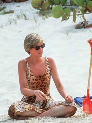 Во-вторых, это купальник с животным принтом, который приписывают марке Gottex. Диана носила его во время отпуска с сыновьями на острове Некер на Британских Виргинских островах в 1990 году. Купальник не следует путать с тем, что был запечатлен в ее путешествии на яхте с Доди аль-Файедом в 1997 году (читайте также: Этот «леопард» изменил мир: самые скандальные кадры из сериала «Корона» — сможете найти настоящую Диану в купальнике?).