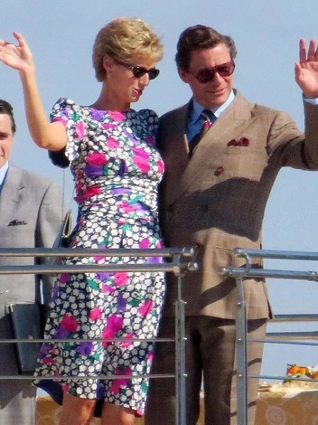 В самом начале сериала Уэльские отправляются во «второй медовый месяц» — путешествие всей семьей вдоль побережья Италии и через Средиземное море. Однако два наряда, воссозданные костюмерами, взяты из двух других семейных поездок. Во-первых, это фиолетовое платье Bellville Sassoon с цветочным принтом из поездки Дианы с Чарльзом на Всемирную выставку в Севилье в 1992 году. На съемках в Пальма-де-Майорка появилась почти точная копия модели.