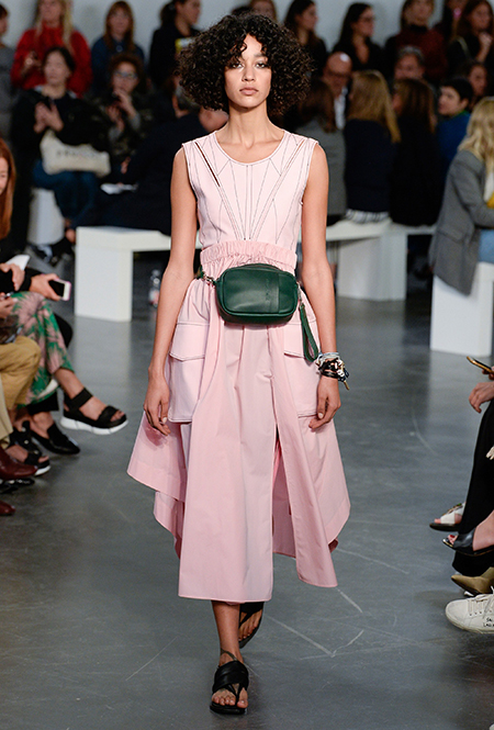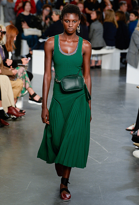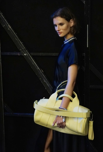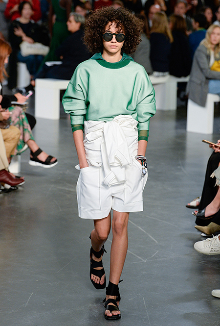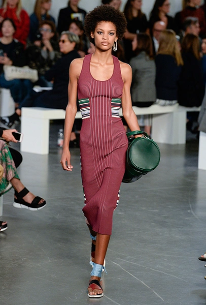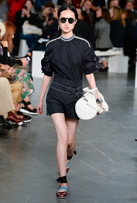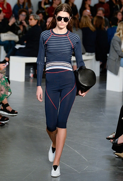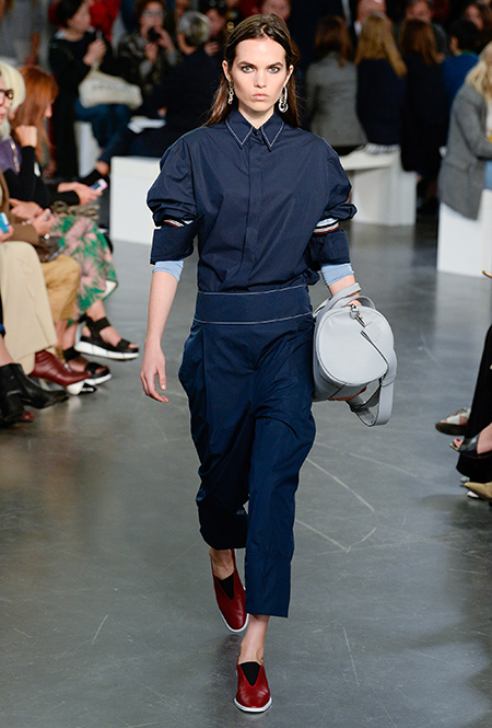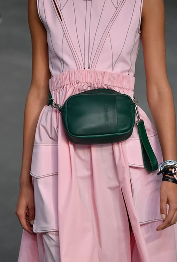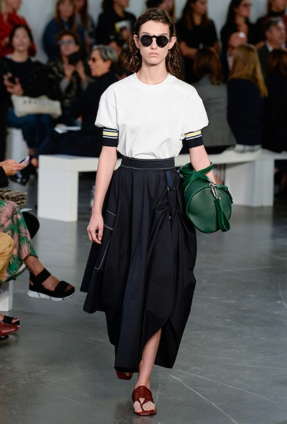 И даже аксессуары у Sportmax перекликаются со спортивной темой. Круглые продолговатые сумки модели на показе несли, прижимая их к бедру, словно футболистки, спешащие на тренировку с мячом.