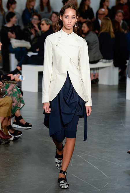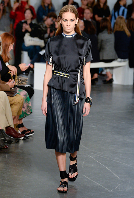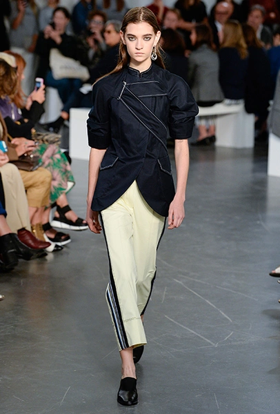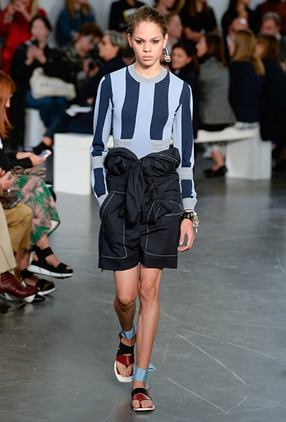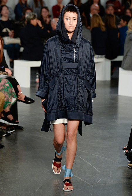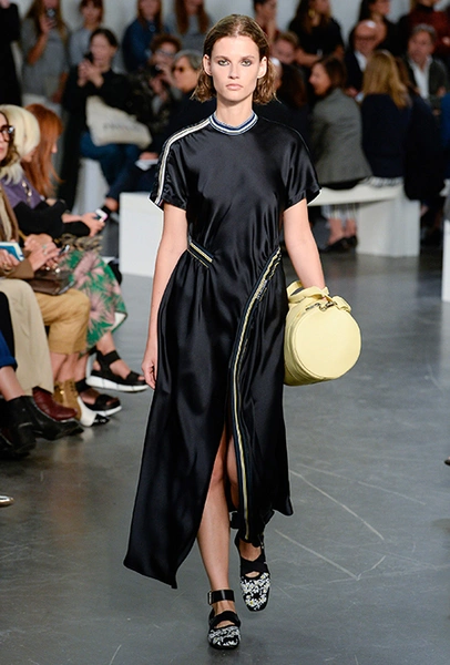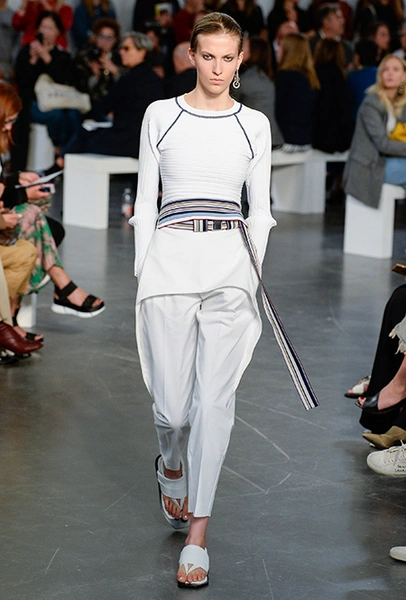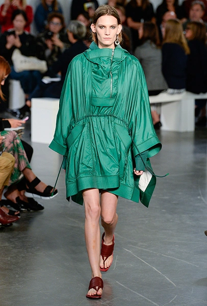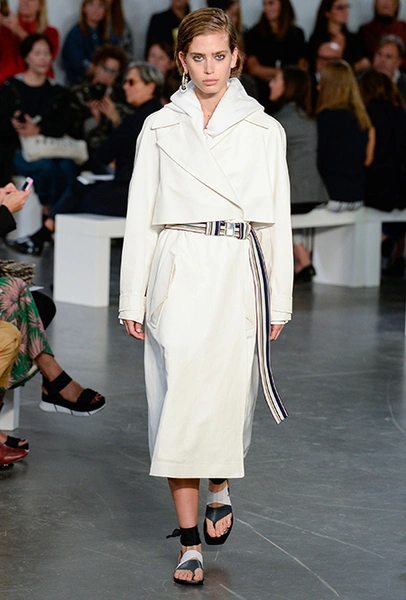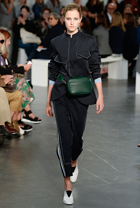 Бренд Sportmax в очередной раз показал всему миру, как аккуратно и ненавязчиво вписать athleisure в повседневный гардероб, да ещё и трансформировать этот стиль так, чтобы он был не менее элегантным, чем какая-нибудь классика. Если в прошлом сезоне балом правили слоганы, то на этот раз за «poise» и динамичность вещей отвечают полосы и зигзаги. Последние ─ не в виде принтов. Зигзаг формируют застежки-ремни, которые под острым углом сходятся с передней стороны курток и длинных плащей.