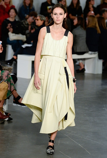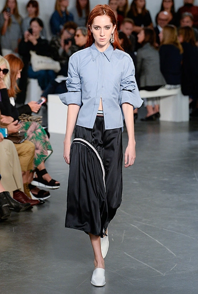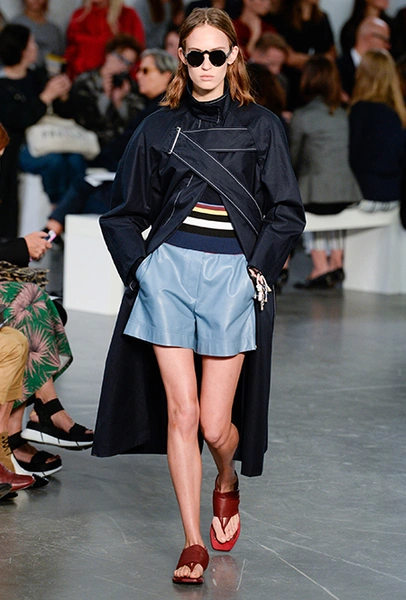 В целом, в коллекции ощущается дух 20-30-х годов, эпохи, когда самые молодые, прекрасные и прогрессивные повально увлекались теннисом, гимнастикой и играми на свежем воздухе. Физкультурница начала ХХ века с удовольствием носила бы прямые свободные юбки, широкие, чуть ниже талии, джемперы или шорты до середины бедра ─ пусть бы ей и показалось странным то, что сделаны они не из ткани, а из блестящей кожи цвета виски.