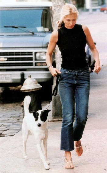Икона стиля Каролин Бассет-Кеннеди преподала нам много модных уроков, и один из них — носить джинсы с самыми простыми сочетаниями. Например, свои mom fit девушка надевала с открытой обувью и базовым топом с высоким горлом. В завершении ее образов всегда были аксессуары: часы или очки в овальной узкой оправе — классика, сочетающаяся со всем!