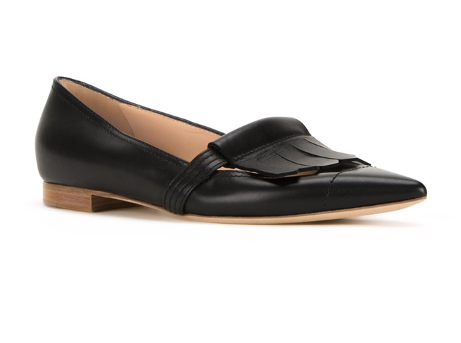 Здесь все, как с любой другой офисной одеждой – неброские принты, минимум деталей и обнаженного тела. Разнообразие помогут внести интересные детали: лоферы с бахромой и пряжками, кожаный рюкзак или блузка с модными рюшами. Если выдержать спокойную гамму, образ будет работать на ваш имидж в течение всего дня.