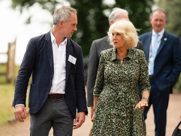 Камилла надела похожее платье от Cefinn в 2020 году для фестиваля, дополнив его сумкой Bottega Veneta (кстати, тоже одна из любимых у королевы). С тех пор платье стало коронным летним образом Камиллы: за июль 2022 она надела его два раза, в 2023 году также два — для телевизионного выступления и цветочного шоу.
