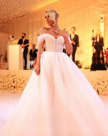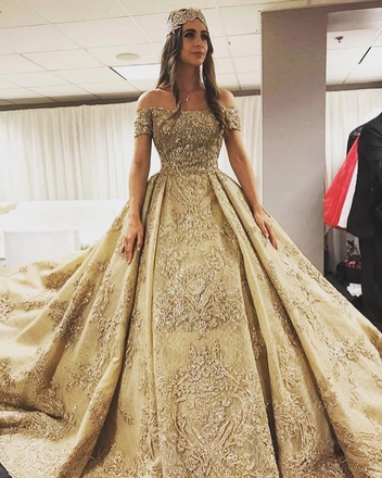 Мариам выбрала платье ливанского дизайнера, но предпочтение отдала Дому Zuhair Murad. Дизайнерское творение обошлось ей в несколько миллионов рублей. Пышная юбка, кружевные вставки и драгоценные камни — получилось настоящее платье принцессы (читайте также: Невеста на миллион: 7 самых дорогих свадебных платьев королевских особ).