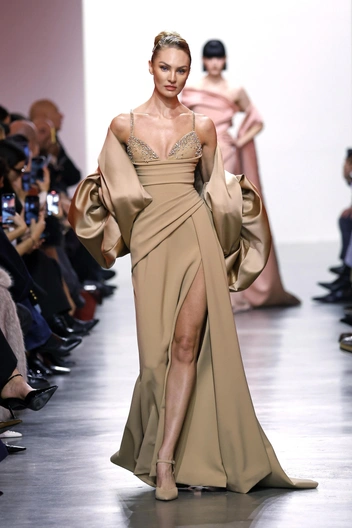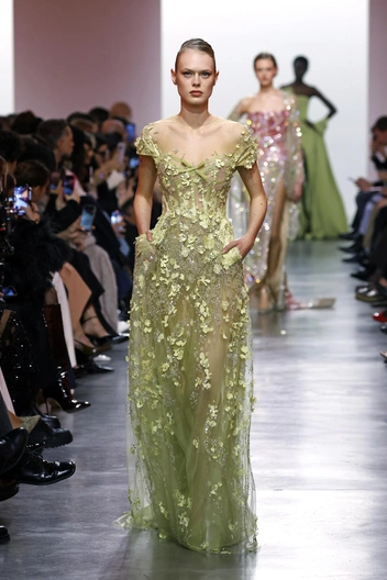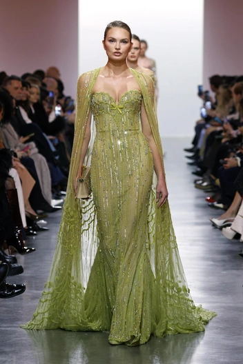 Отдельно отметим кастинг показа. В 2025 году на подиум Haute Couture вышли топ-модель Стелла Максвелл и супермодель Кэндис Свейнпол, которые считаются ведущими «ангелами» Victoria’s Secret. А топ-модели Роми Стрейд досталось одно из платьев, которое может стать хитом прошедшей коллекции — с кейпом в салатовом оттенке.