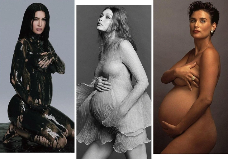 Несколько веков назад беременная женщина считалась чуть ли не божеством — а в некоторых культурах правила были настолько строгими, что ей нельзя было выходить из дома. К тому же, носить одежду, которая обличает твое положение, считалось постыдным — поэтому дамы кутались в балахоны и старались скрыть живот. Все резко поменялось, когда американская актриса Деми Мур появилась на обложке Vanity Fair в 1991 году. Фотограф Энни Лейбовиц тогда создала «бомбу» даже для продвинутого западного мира, впервые сфотографировав обнаженную беременную женщину, да еще и для обложки одного из ведущих журналов. После Деми «беременные» фото стали традицией — почти каждая знаменитость стала придумывать необычные концепции для съемок, чтобы объявить о своем положении. Показываем самые стильные и необычные из них.