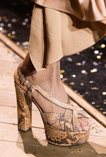 Сумасбродная и эклектичная эпоха 70-х вобрала в себя все тренды прошлого. И кажется, именно в те годы стало ясно, что носить можно абсолютно все и сразу, и вопрос актуальности вещей – это только умение интересно стилизовать их. В моде того времени дизайнеры ежегодно черпают вдохновение (и часто дословно копируют образы) для своих праздничных коллекций. Пайетки, блестки, стразы, экстремальное мини, переливающиеся боди и топы – все главные маркеры стиля диско мы видим в магазинах каждое предновогоднее время. Однако с особенным интересом зимой стоит присмотреться к босоножкам на платформе с устойчивым каблуком. В первую очередь – из соображений практичности и утилитарности: такие босоножки точно пригодятся вам в течение года еще не раз, и для этого не обязательно иметь особый повод.