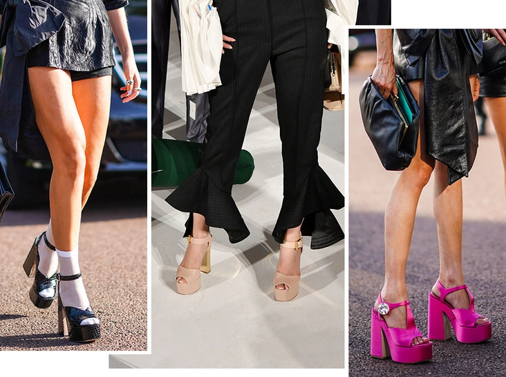 В преддверии праздников советуем присмотреться к массивным босоножкам с каблуком и примерить их в новогоднюю ночь. Тем, кому уже надоели классические лодочки, босоножки станут отличной альтернативой с не менее завидной палитрой сочетаний. Кроме того, если вы действительно ответственно подойдете к примерке пары и подберете идеальную для себя колодку, в босоножках на платформе вы будете чувствовать себя комфортнее, чем в лодочках, и сможете танцевать всю ночь (читайте также: Самые модные платья для встречи Нового 2020 года: 5 главных трендов).