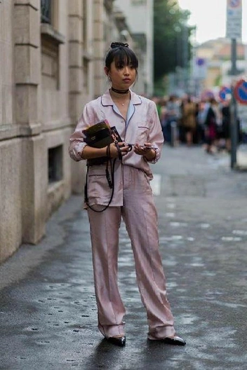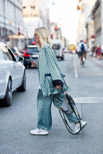 С костюмом в пижамном стиле