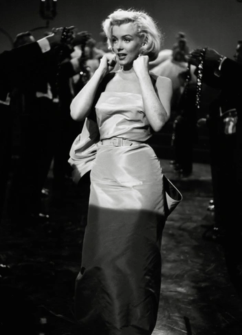 Мэрилин Монро у многих ассоциируется с белым платьем с развивающейся юбкой, в котором она появилась в картине «Зуд седьмого года». Наряд для нее создал художник по костюмам Уильям Травилла и стал неотъемлемой частью образа культовой актрисы. Благодаря своей популярности, Мэрилин стала важнейшей фигурой и в модной индустрии, а значит привлекала к себе внимание не только экранными нарядами, но и образами в жизни, а особенно на красной дорожке. Один из самых запоминающихся образов Монро, буквально символизирующих моду Голливуда того времени, — белое платье без бретелей, подчеркивающее женственные формы звезды, в котором актриса позировала фотографам на премьере мюзикла «Назовите меня мадам» в 1953 году. Мэрилин дополнила наряд высоким перчатками и меховым палантином и приковала этим нарядом к себе все внимание гостей и прессы (читайте также: Три свадьбы Мэрилин Монро: в чем выходила замуж главная блондинка Голливуда).