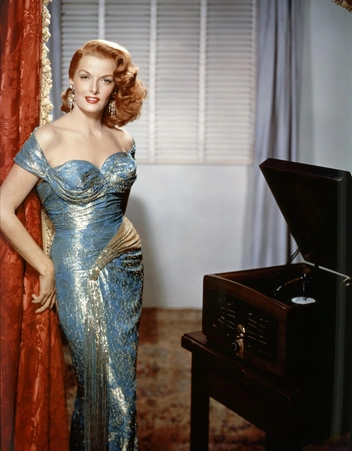 История этого экранного образа Джейн Расселл очень любопытна. Его создатель — художник по костюмам Уильям Травилла, прославившийся своим плодотворным сотрудничеством с Мэрилин Монро. Именно он создавал практически все наряды актрисы для фильмов, а также поработал и над этим изумрудно-зеленым ансамблем. В платье из шелковой парчи с вплетенной в него золотой нитью, которая простирается от бедер и каскадом спускается по передней части наряда, актриса появилась в фильме «Восстание Мэми Стоувер». Хотя изначально этот образ звезда должна была надеть во время съемок в культовой ленте «Джентльмены предпочитают блондинок», где Джейн сыграла с Мэрилин Монро.