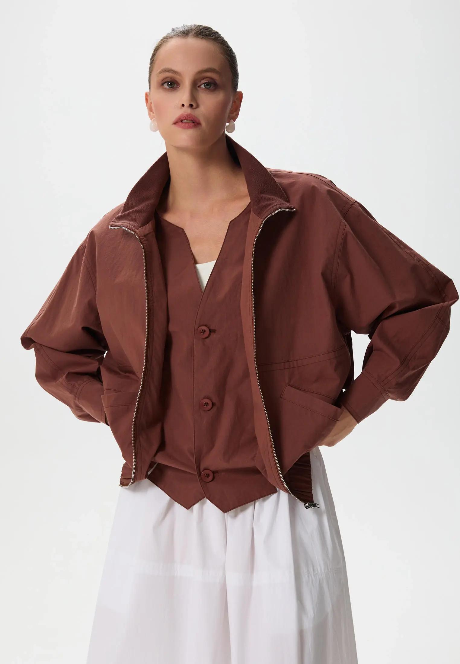 Если вы всерьез прониклись спорт‑шиком, без ветровки в весенней капсуле не обойтись. Это тот самый функциональный слой, который одинаково органично смотрится и с трикотажным платьем, и с прямыми джинсами и даже с миди‑юбкой.
