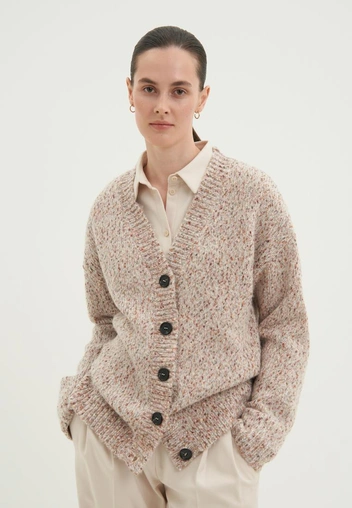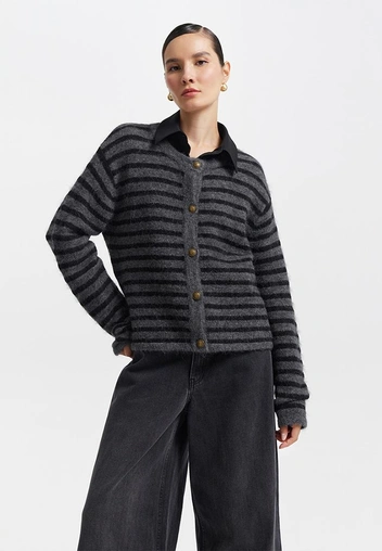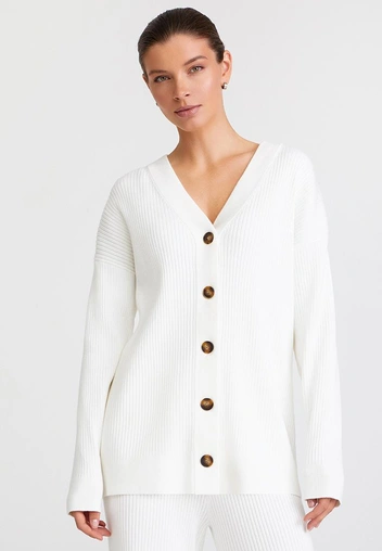 Отказаться стоит и от кардигана с круглой горловиной, которая визуально увеличивает ширину плеч и нарушает пропорции тела. Вместо такой модели стоит присмотреться к кардигану с V-образным вырезом — он освежит образ и добавит ему элегантности.