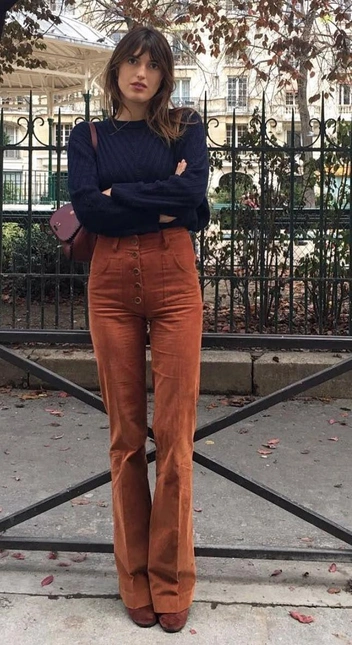Но если вам захочется усилить их влияние, то обратите на модели в ярких цветах или в модных фасонах — например, клеш или с высокой посадкой. Бордовые, винные или горчичные оттенки отлично подчеркнут индивидуальность и подойдут для зимних аутфитов.