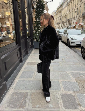 Еще велюр отлично «сходится» по текстурам с шубами и дубленками: в таком случае два шикарных материала дополняют друг друга и выводят даже базовый образ для прогулки по зимнему городу на новый фэшн-уровень — в духе упомянутой выше «тихой роскоши».