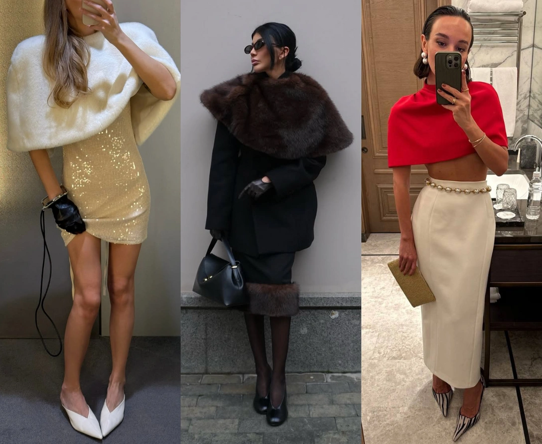 Кейпы правят фэшн-миром зимой 2026 года: асимметричные меховые с неровным краем или классические костюмные модели — они вносят изюминку в любой образ. Мы вместе наблюдали, как мода на акцентные плечи на жакетах и пиджаках прошлого сезона эволюционировала в самостоятельный элемент гардероба — гибкий и драматичный. Они буквально «заставляют» любую базовую вещь — шерстяное пальто или лаконичное боди — заиграть по-новому: элегантно подчеркивают шею и добавляют объем именно там, где нужно. Да-да, одна маленькая деталь — акцентный кейп, размывает грань между кэжуалом и кутюром, открывая десятки свежих комбинаций для зимних стилизаций без лишних усилий.