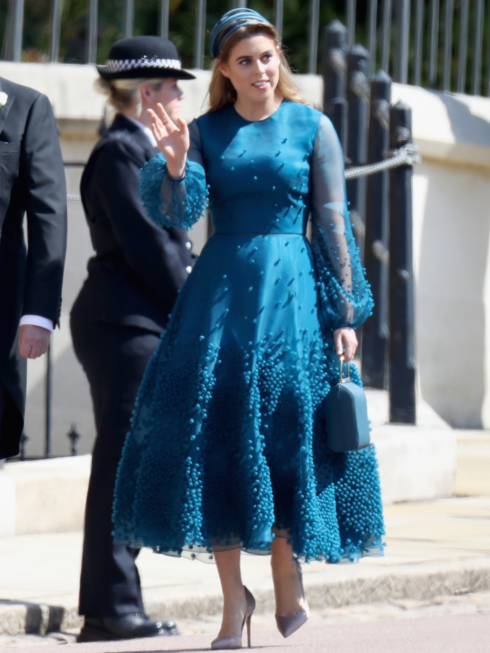 Беатрис выбрала атласное платье цвета слоновой кости, декорированное камнями, в котором Елизавета появлялась в 1962 году на премьере «Лоуренса Аравийского», а спустя пять лет — на открытии парламента. Винтажный образ для Королевы создавал один из ее самых любимых кутюрье Норман Хартнелл. Смогла не только отдать дань любимой бабушке, но и отвести взгляды от скандалов с герцогами Сассекскими и отцом принцем Эндрю. Чем, конечно, заслужила еще больше похвалы и поддержки со стороны поклонников и британских подданных, которые последнее время довольно скептически относятся ко многим представителям БКС.