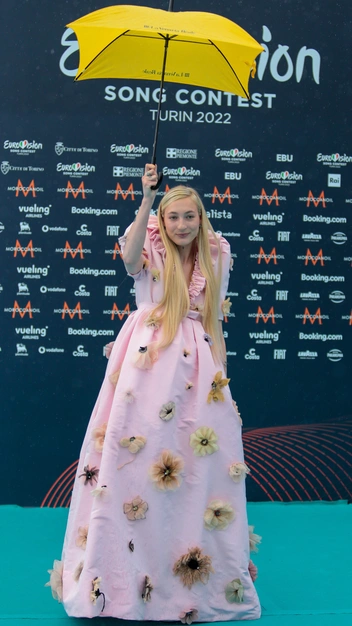 Над гардеробом нидерландской певицы тоже отлично потрудился стилист. Он нашел ей и стильный комплект с укороченным жакетом, юбкой и брюками для сценического выступления, и розовое платье с акцентными плечами Victor & Rolf из весенне-летней коллекции 2022.