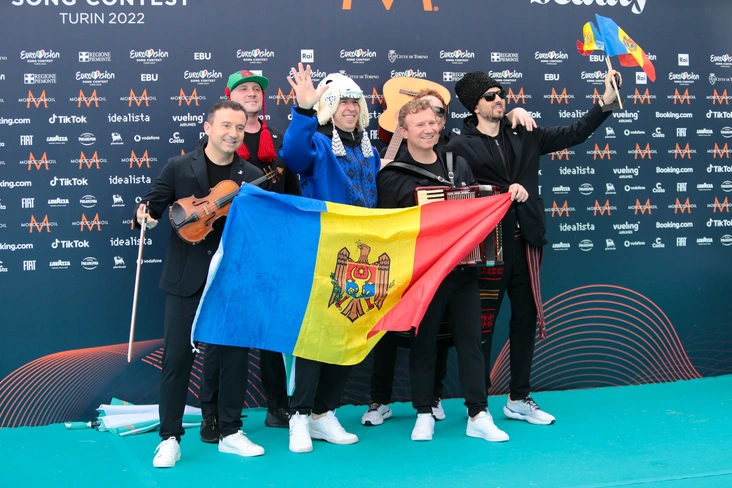 Участники из Молдавии наслаждались каждым мгновением своего выступления. Яркие брючные костюмы музыкантов и красно-синий комплект с юбкой солиста не могут не бросаться в глаза.