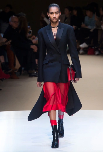 Простое и выигрышное сочетание для осени — комбинация легких струящихся и тяжелых материалов. Например, микс органзы с твидом, шерсти с кружевом и меха с атласом. Контраст между объемной, плотной тканью и легким шелком или шифоном подчеркивает женственность и дает возможность носить любимые (даже летние) вещи осенью. Любителям воздушных платьев на заметку!