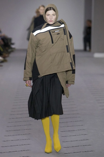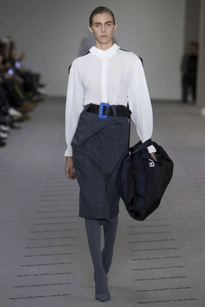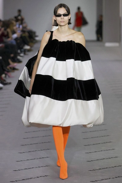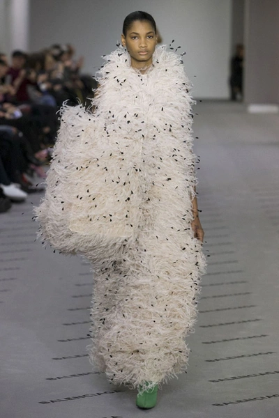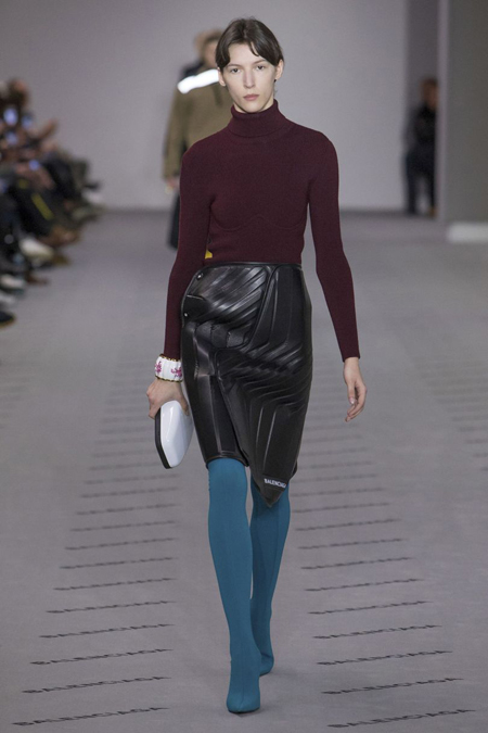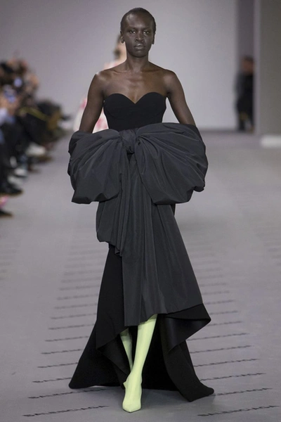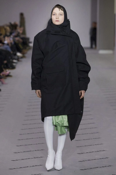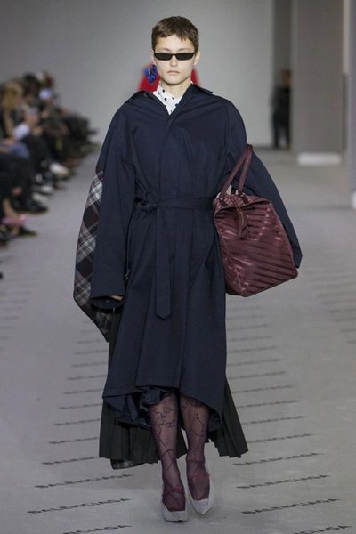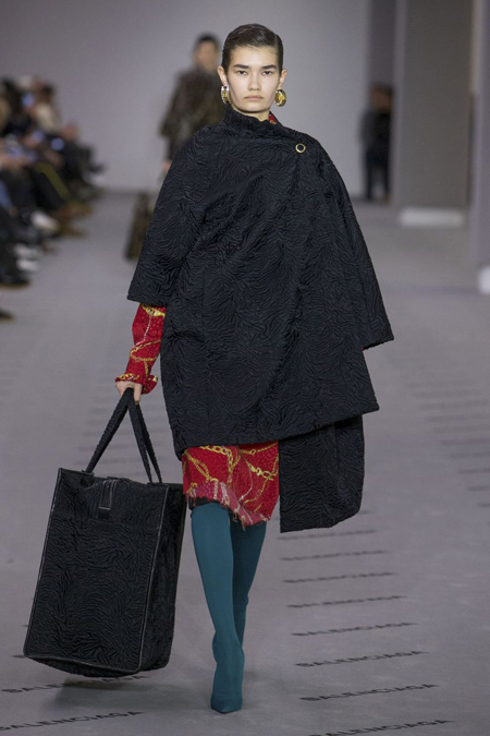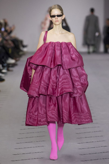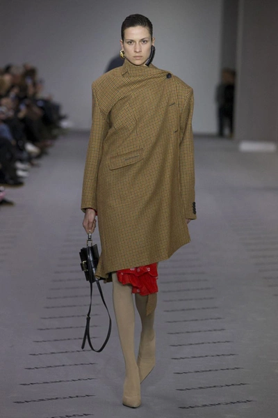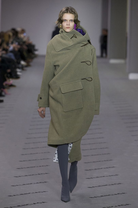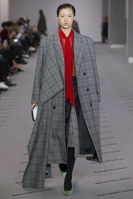 Демна Гвасалия умеет шокировать с правильным послевкусием. Первый шок от архивной клетки Кристобаля Баленсиаги, превращенной, как заметил один коллега, в «укус пчелы в плечо», прошел с пониманием, что это искусная драпировка, которая отстегивается и обнажает идеальное пальто.