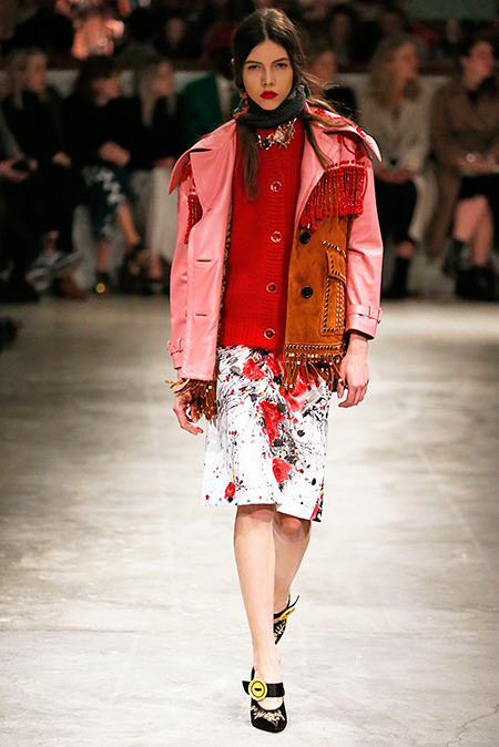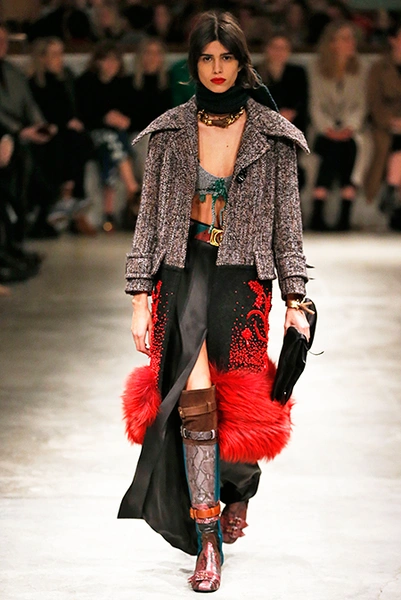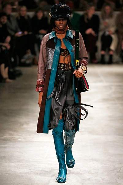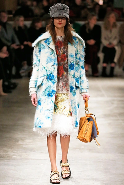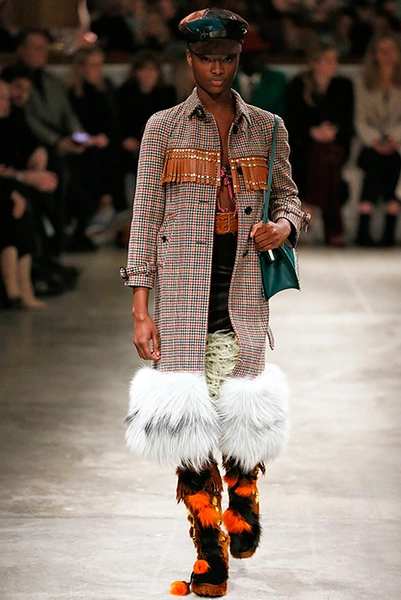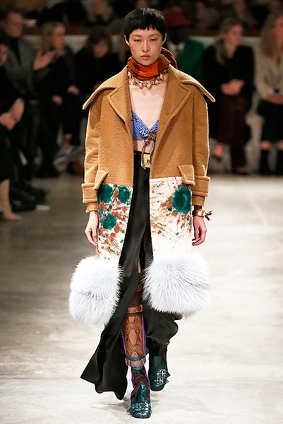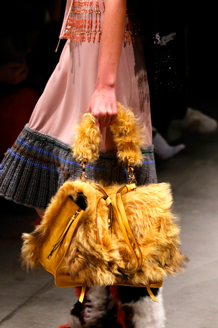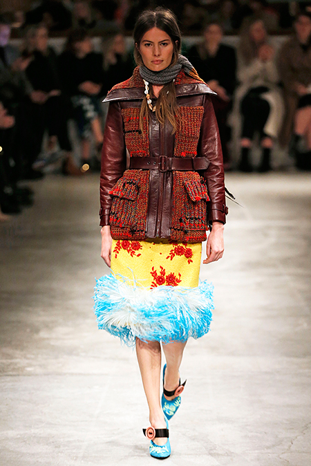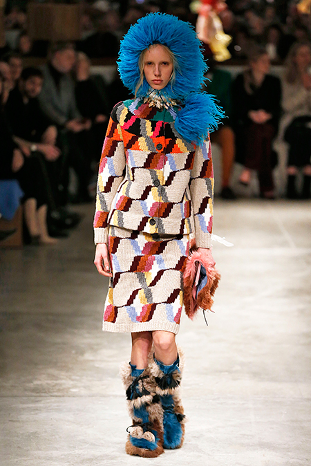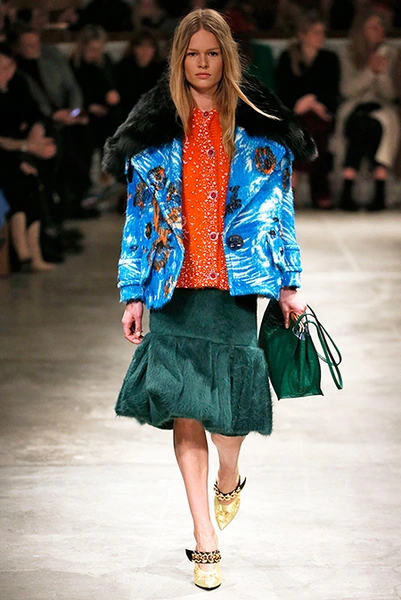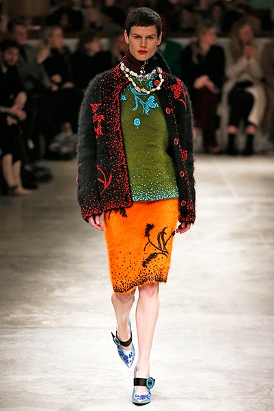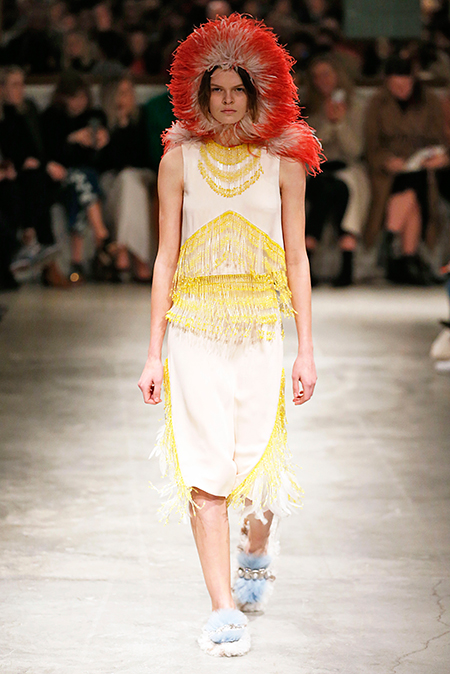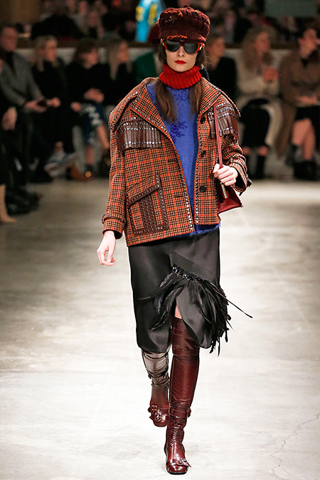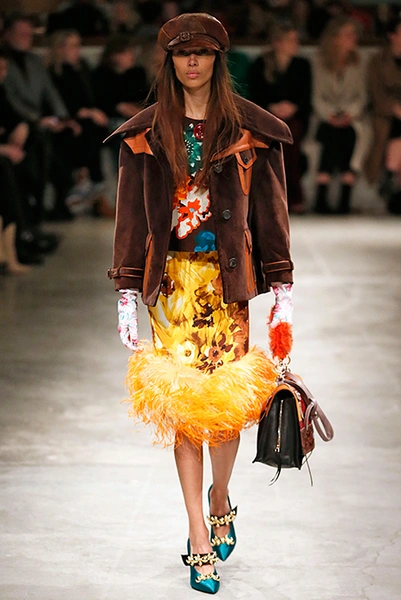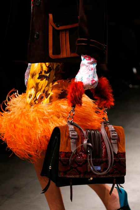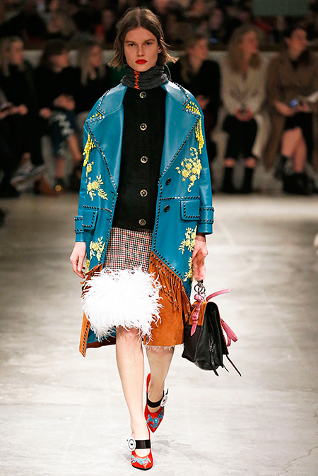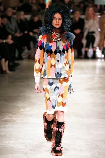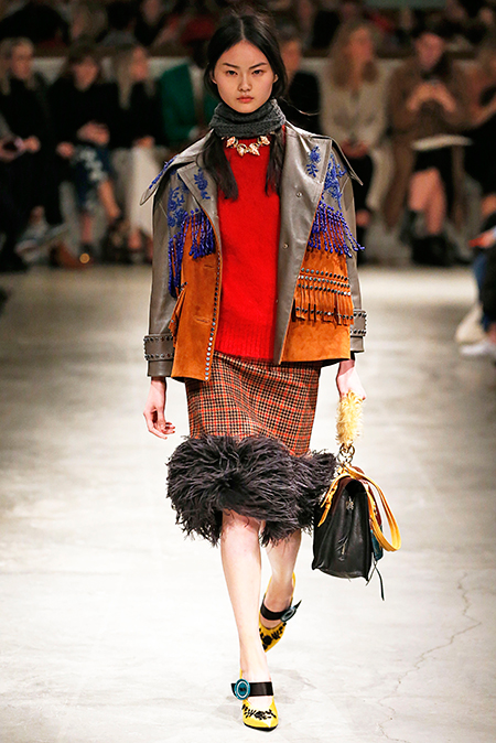 Я буду неоригинальна, если скажу, что Миучча Прада опережает моду и диктует ее, при этом цитируя себя. В новом шоу было несколько отправных точек. В первую очередь, для того, чтобы лучше понять коллекцию осень-зима, стоит начать с мужского шоу и посмотреть pre-fall. Основой послужили национальные образы коренных жителей Северной Америки, Перу, вплетенные в канву правящих бал семидесятых.