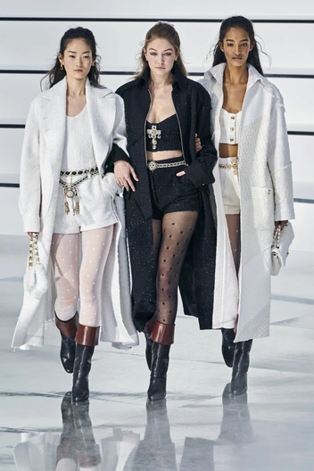 Совсем не новая тенденция, но в этом сезоне Chanel заметно ее освежили и сделали колготки с логотипами из новой коллекции предметом вождения многих модных инфлюенсеров. Плотные колготки в целом — отличная инвестиция и способ интегрировать юбки и платья в зимний гардероб. Если ваша верхняя одежда довольно длинная и достаточно теплая, можно присмотреть варианты потоньше во всех других случаях рисковать не советуем).