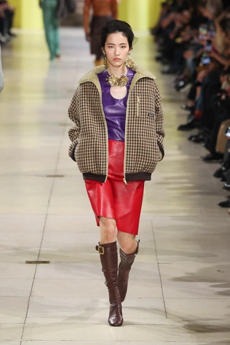 Один из самых обсуждаемых стайлинг-приемов последних сезонов — союз фиолетового и вишнево-красного, который, в частности, можно было увидеть в подиумных комплектах Miu Miu.