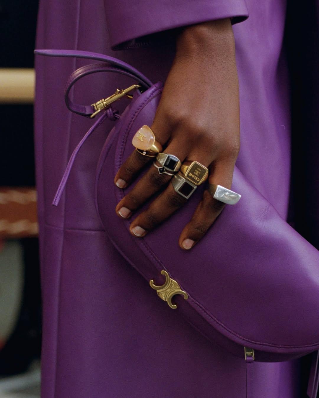 Celine делают ставку на аксессуары и структурные вещи: ремни, сумки, иногда — один акцентный жакет, вокруг которого строится весь аутфит. Такой подход удобен для реальной жизни: он позволяет примерить фиолетовый самым безопасным образом (читайте также: 6 лучших сумок на лето от российских дизайнеров).