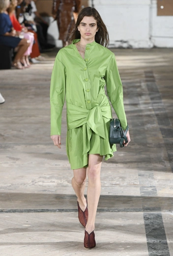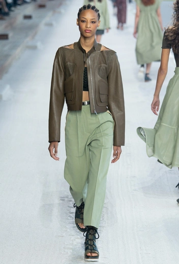 Если вы давно увлекаетесь оттенками хаки, и военный стиль для вас – совсем не новость, к фисташковому точно стоит присмотреться особо: он работает абсолютно по тем же правилам. Зимой вещи в разбеленной гамме зеленого легко носить с предметами гардероба в приглушенной палитре. А летом носим с легкими и летящими фактурами, аксессуарами из соломы и открытой обувью.