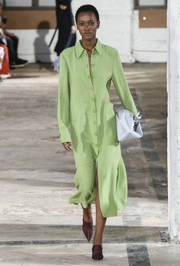Идеальной альтернативой в 2019 году станет один из самых распространенных оттенков зеленого (а теперь и главный конкурент хаки) – разбеленная палитра фисташки, оливы или шалфея. Название своему любимому оттенку выбирайте по душе. И да, носить такие смело можно не только весной и летом, но и в холода. Отчасти палитра выбеленных или даже «грязных» оттенков пригодится в течение всего года и может легко стать альтернативой белому, который мы зимой старательно бережем от слякоти и грязи. Фисташковый – такой же универсальный и легко комбинируемый, но выглядит намного интереснее, чем привычный ахроматический дуэт черного и белого или серо-бежевая палитра.