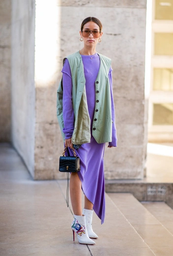 Если хотите прилагать минимум усилий и выглядеть максимально стильно, вспоминаем универсальный лайфхак, который работает с любым цветом: тотал-луки в единой гамме. К тому же, шалфей – смесь белого, зеленого и капли черного, а значит с любым из этих оттенков оливковый будет смотреться идеально. А для экспериментаторов стоит присмотреться к сочетаниям фисташки с пыльно-розовым и пурпурным или броскими неоновыми цветами «вырвиглаз» – так получим самые трендовые образы.