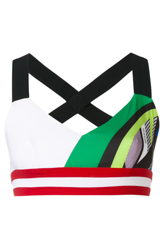 От прочих разновидностей кроп-топов спортивный отличают яркие, чистые расцветки, функциональный крой (порой со сложным переплетением лямок) и полное отсутствие бельевого подтекста (никаких чашечек или кружева). Сам по себе такой топ не несет такого же яркого стилевого звучания, как предыдущие вещи, поэтому его можно сочетать с теми же брюками в спортивном стиле и не бояться переборщить. Кроме того, подойдут и нарядные юбки, и широкие брюки-палаццо, и джинсы. А для тех, кто любит эксперименты с многослойностью, предпочтителен вариант надеть кроп-топ прямо на рубашку (так, кстати, сделали стилисты на показе MSGM). Важный нюанс – высокая посадка низа. И не потому, что мы не верим, что ваш пресс в идеальной форме, а потому, что оголенный пупок в городе – это не слишком этичное решение.