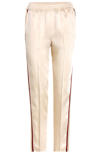 Сегодня брюки в спортивном стиле могут быть очень далеки от аутентичных треников по силуэту. Главное – это детали: яркие контрастные лампасы, логотипы, резинки, шнуровки или молнии. Особый шик – носить такие брюки с подчеркнуто женственным или строгим верхом: удлиненным жакетом, рубашкой с воротником-стойкой или романтичной летящей блузкой. Степень присутствия спорта в образе можно варьировать с помощью аксессуаров. Кроссовки или шпильки? Рюкзак или клатч? Выбор за вами.