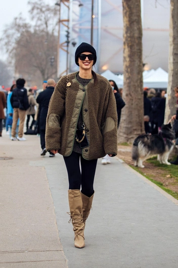 Флиска и легинсы. Не забываем про беспроигрышный стайлтрик от Кайи Гербер. Раньше мы позволяли себе такое образы только, чтобы добежать до спортзала, а сегодня — это уже полноценный аутфит для осенне-зимней прогулки по городу.
