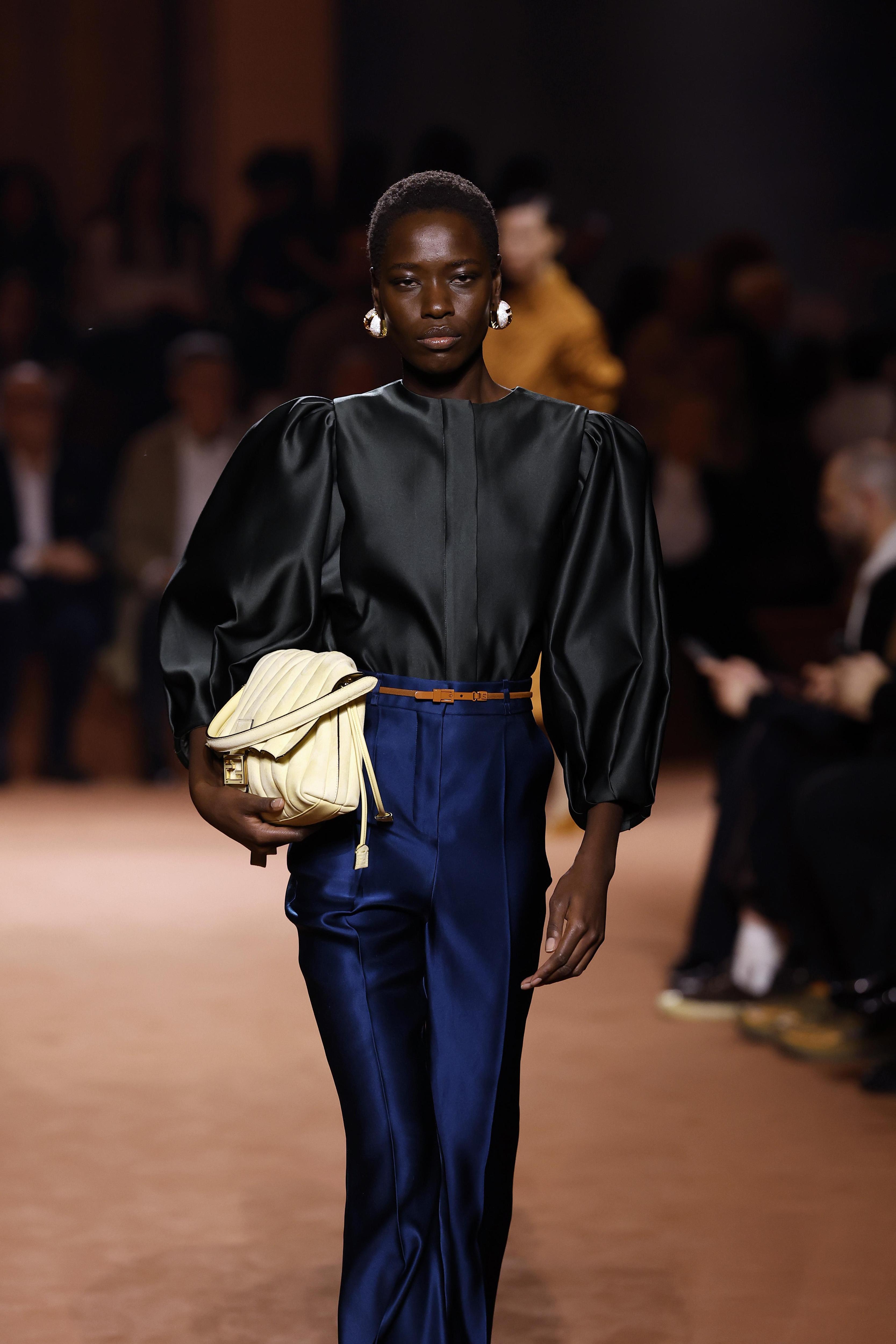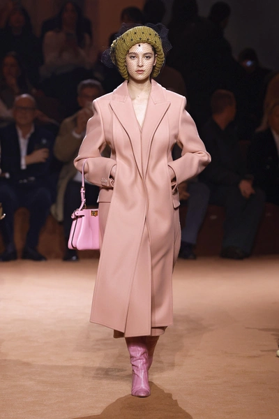 Воплощение формулы видим и на показах других мастеров игры с цветом. Hermes, к примеру, сочетают светло-серую сумку с темно-серыми брюками (А+А) и черным нейтральным свитером (В). Fendi же оказались ближе всего к героине сериала «Разделение», и показали сочетание лазурно-синего с черным (А+А) и молочным (В). А также поиграли с модным нежно-розовым: цвет жвачки хорошо сочетается с оттенком пыльной розы (А+А) и контрастным оливково-зеленым (В).