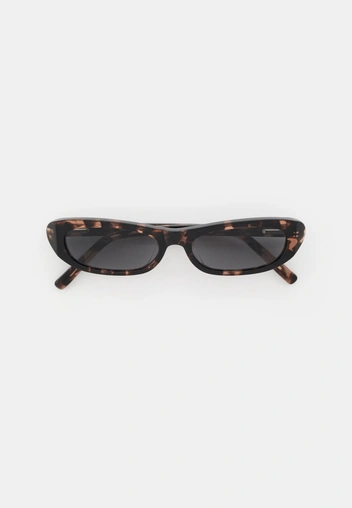 На другой стороне ринга — сверхтонкая оправа, которая, если глаза защитит от солнца — уже спасибо. Такие очки — что-то среднее между 60-ми, когда в моде был футуризм Пьера Кардена и Андре Куррежа, ретро-стилем 90-х, когда в топе трендов были узкие квадратные оправы, как у Хейли Бибер, и cat eye — очками, которые вытягиваются к вискам и прорисовывают нам модельные скулы. Опять же, носим такие и для защиты от солнца, и для защиты от голубого света на работе.