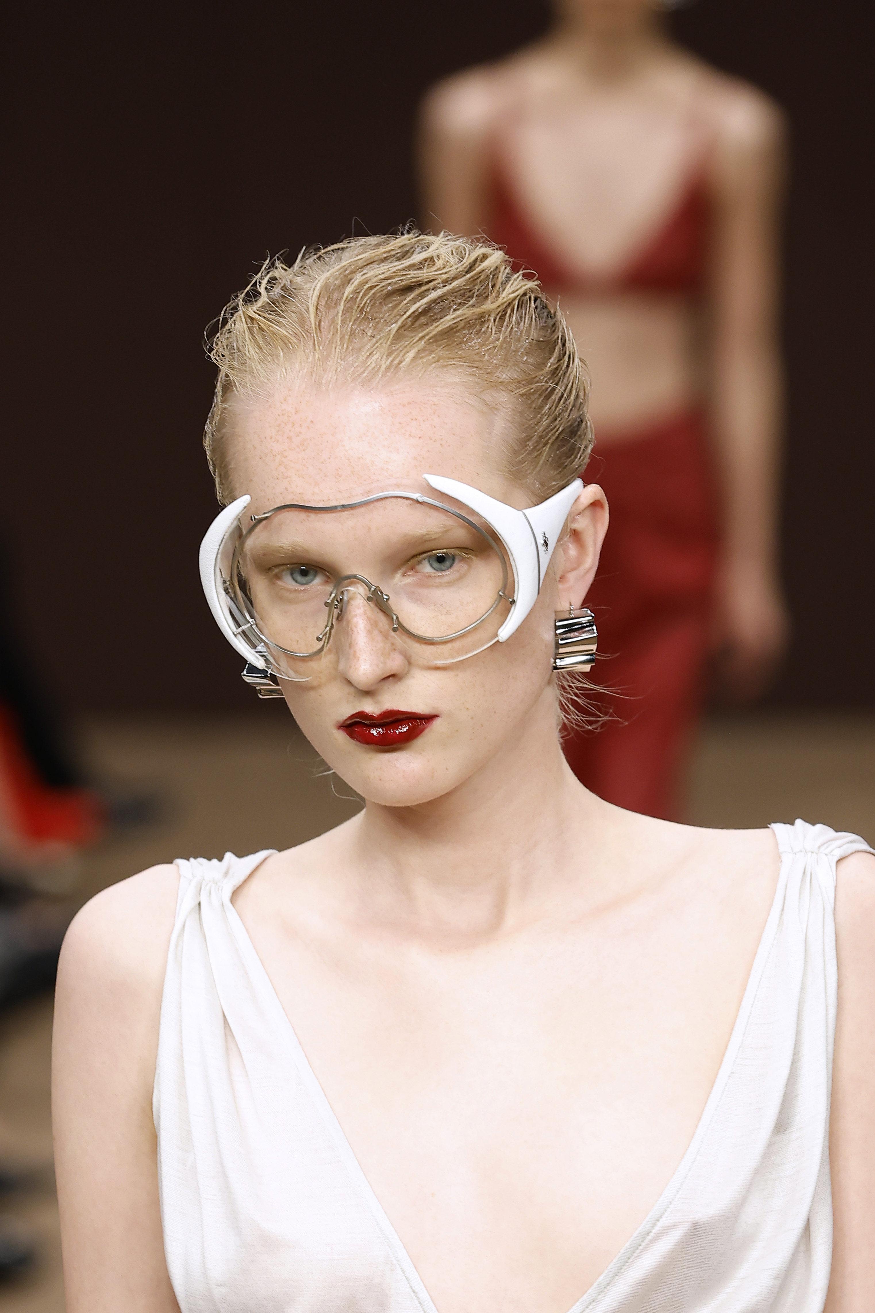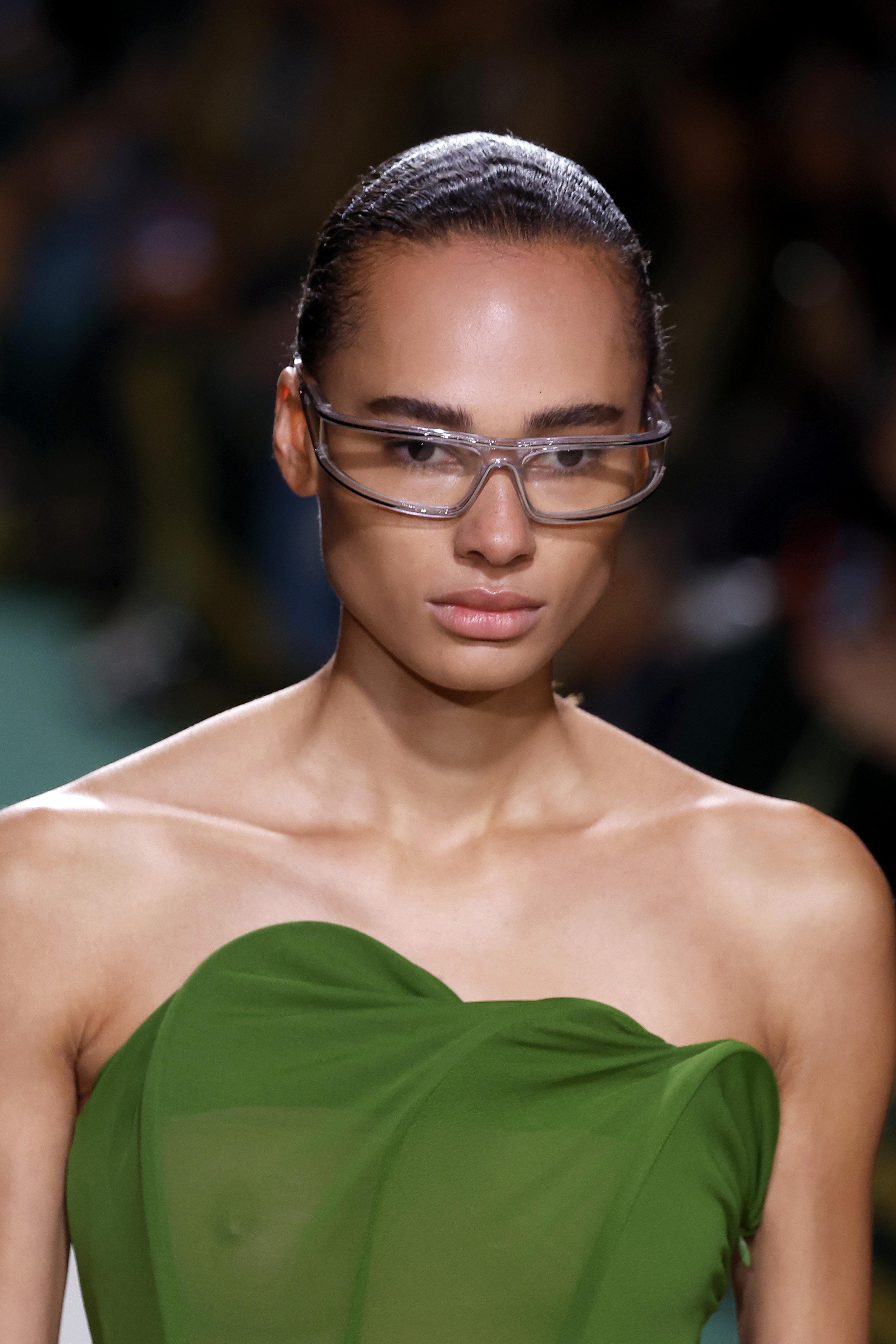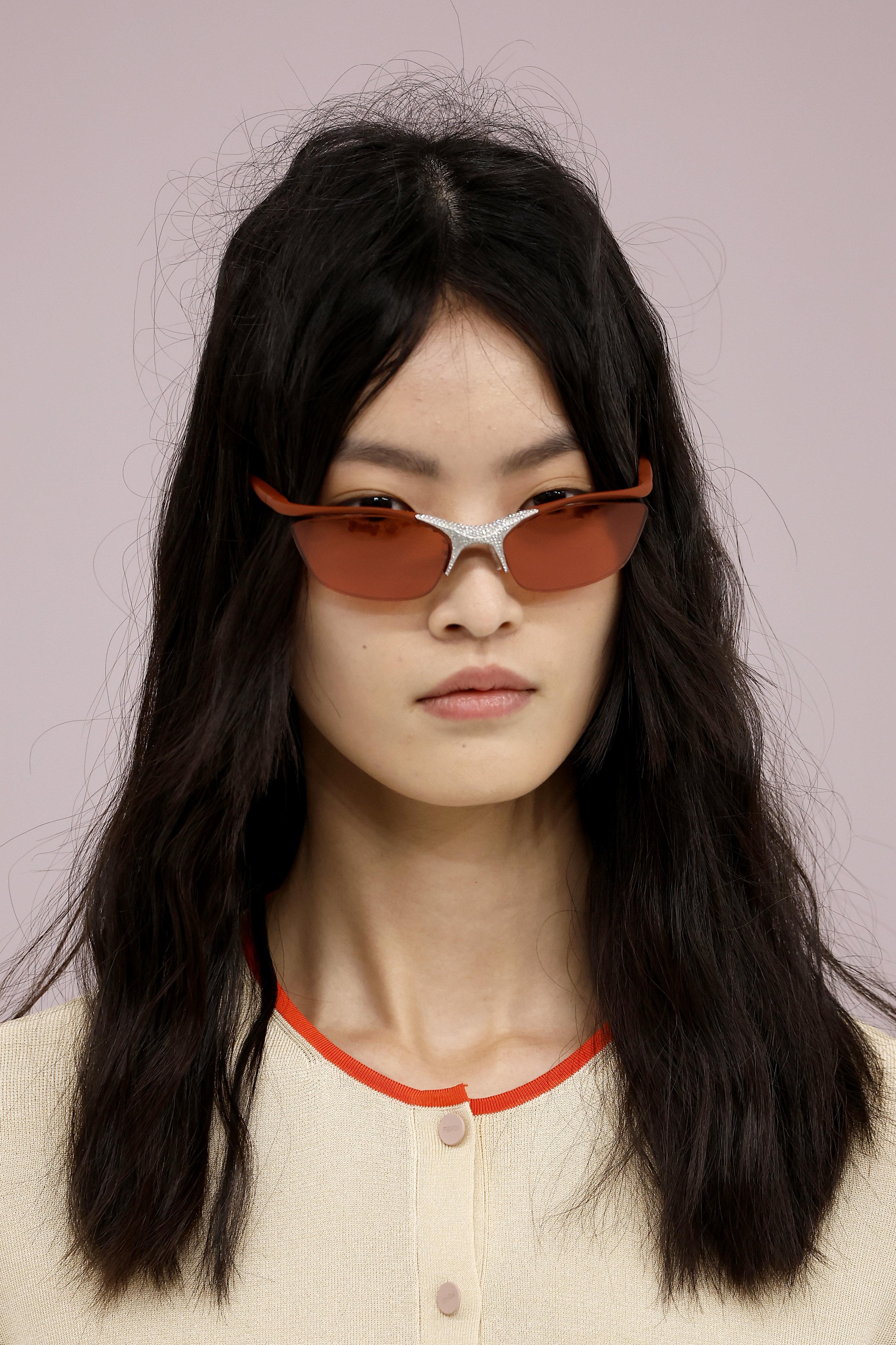 Одно из главных явлений в моде прямо сейчас — это вещи-заявления. Мы видим много сигналов к тому, что «тихая роскошь» с ее безопасными правилами стиля уходит, а всяческие эксперименты и креатив врываются на радары. Причина в том, что нам хочется проявить себя как можно ярче, и стиль в этом — лучший помощник. Поэтому видим на подиуме фантазийные и порой несуразные оправы, которые не впишутся в традиционный образ, но станут ярким акцентом.
