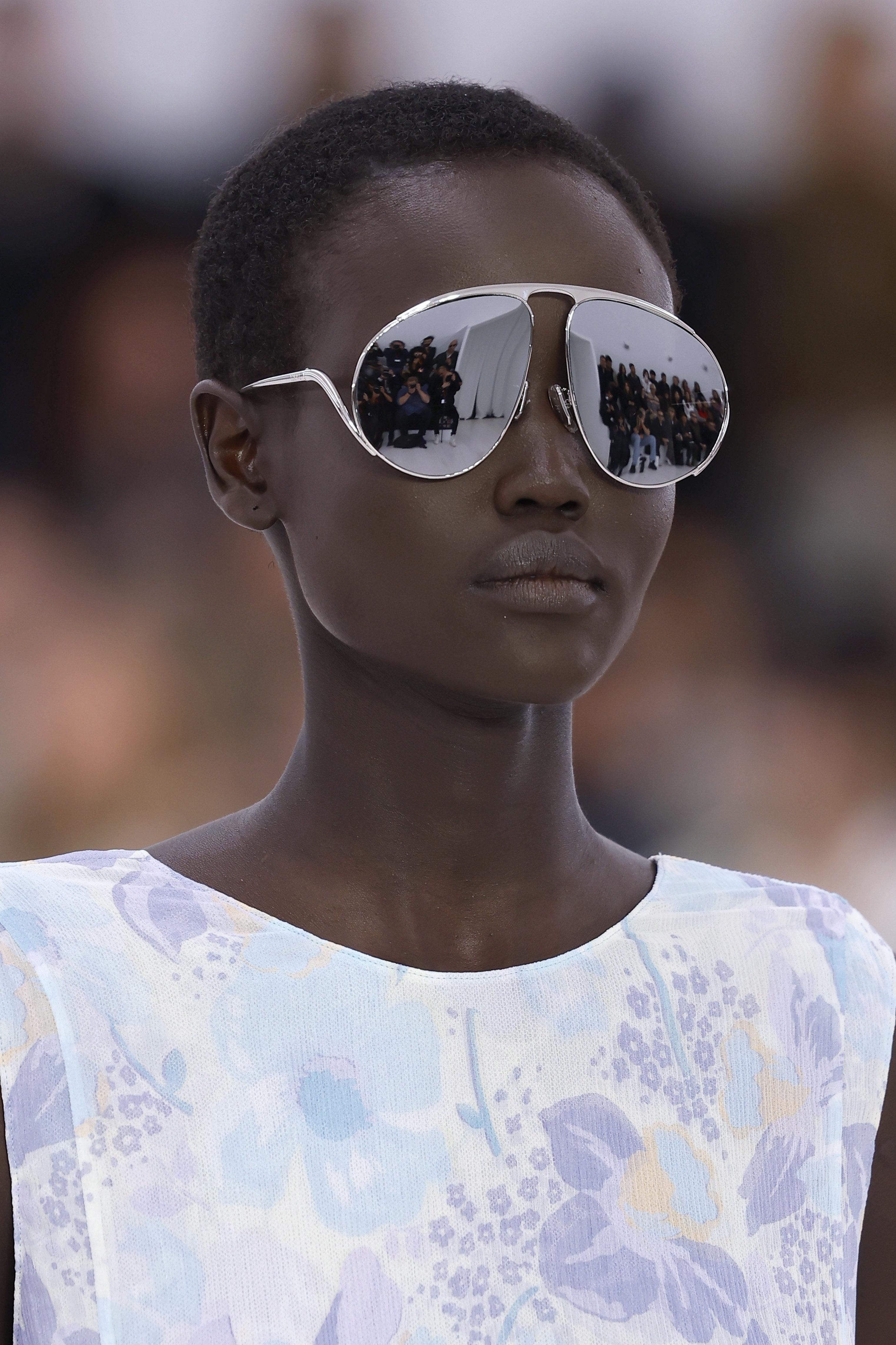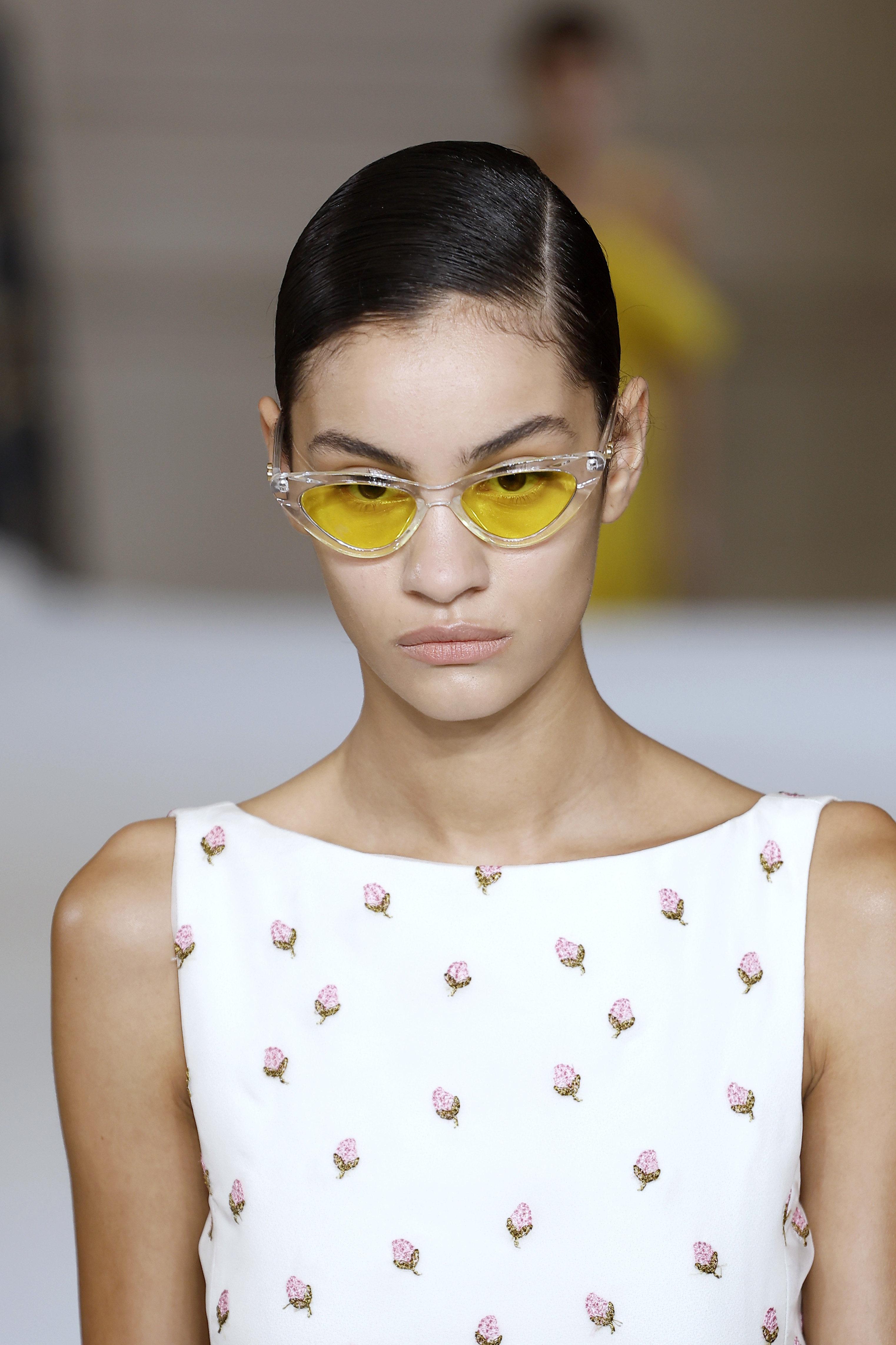 К слову о защите глаз — в моде также огромные оправы, которые закрывают, без шуток, половину лица. Такие были в моде в десятые годы, когда круглые и крупные солнцезащитные очки были олицетворением роскоши и женственного образа. Сейчас пора достать оправу из закромов, или обзавестись новой — не только круглой, но и в форме авиаторов, как на показе Gucci.