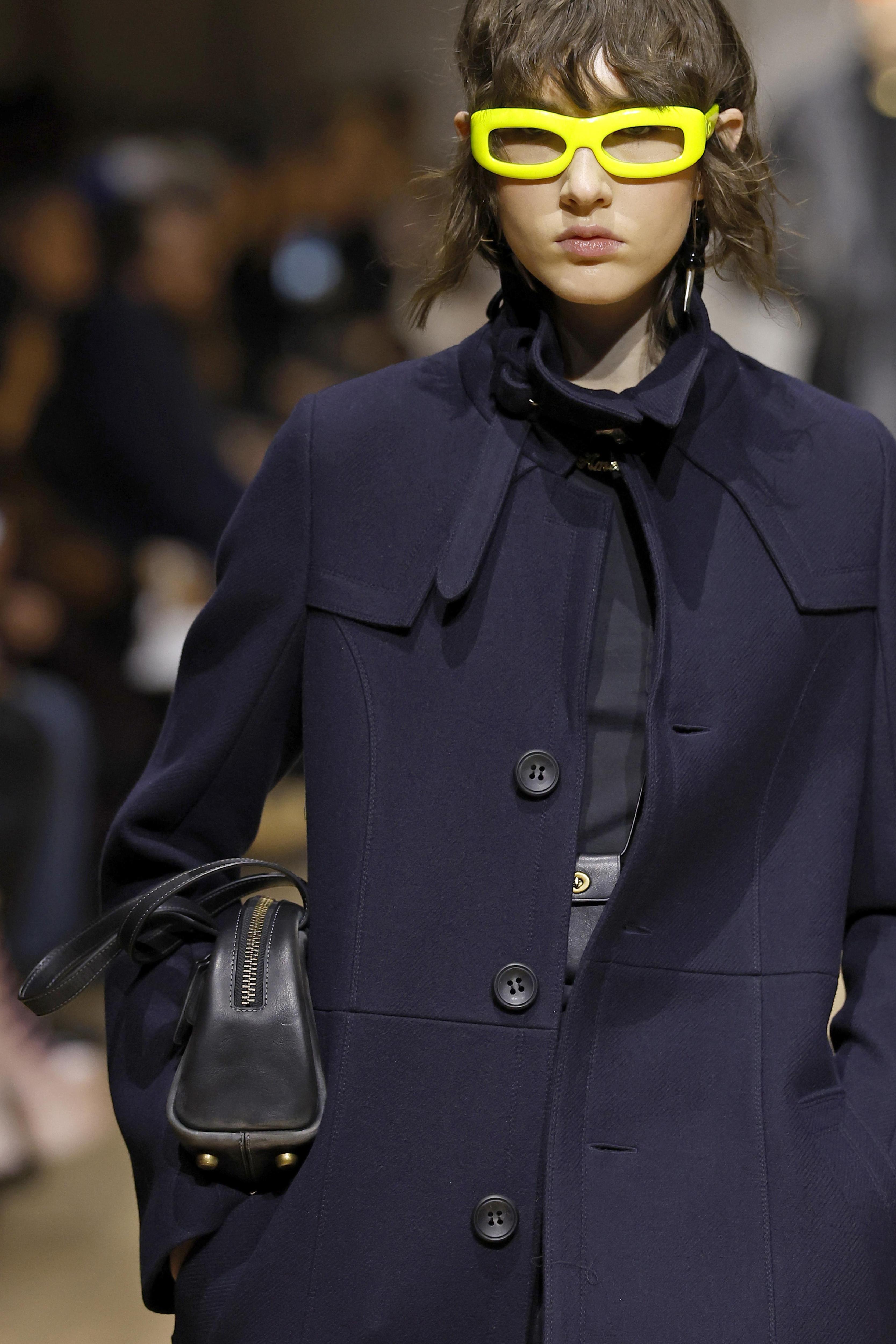 Выделиться хочется многим, но далеко не все хотят носить яркий гардероб — так что выходим из положения за счет аксессуаров, привлекающих внимание тем или иным образом. К слову, по этой причине сейчас в моде крупные браслеты и цветные камни, а еще неоновые или просто очень яркие оправы. Смотрим на примере Coach — даже классическое синее пальто смотрится интереснее с, казалось бы, детской желтой оправой (читайте также: Расставляем акценты: 11 модных украшений на 2025 год, которые сделают образ ярче).