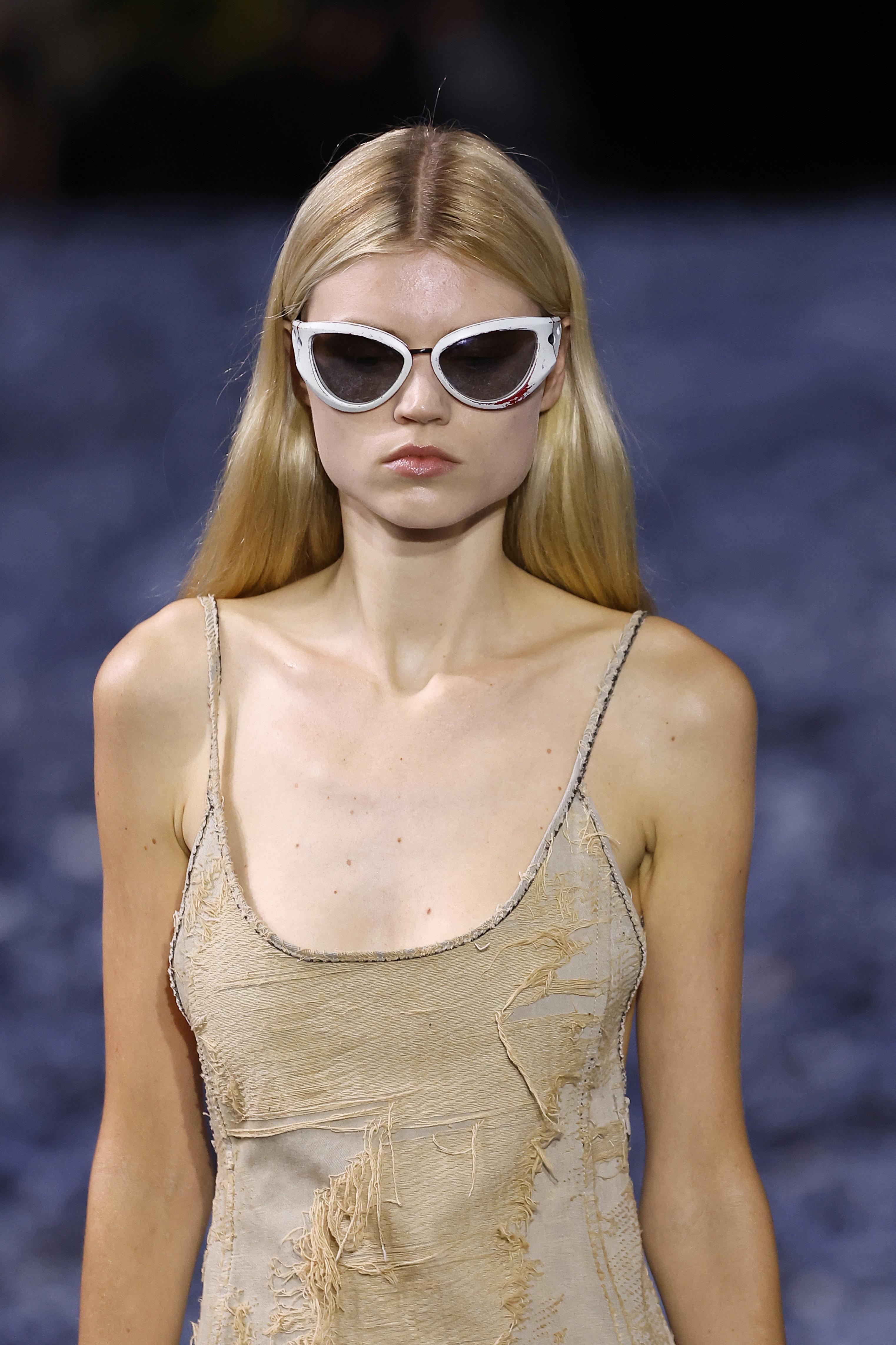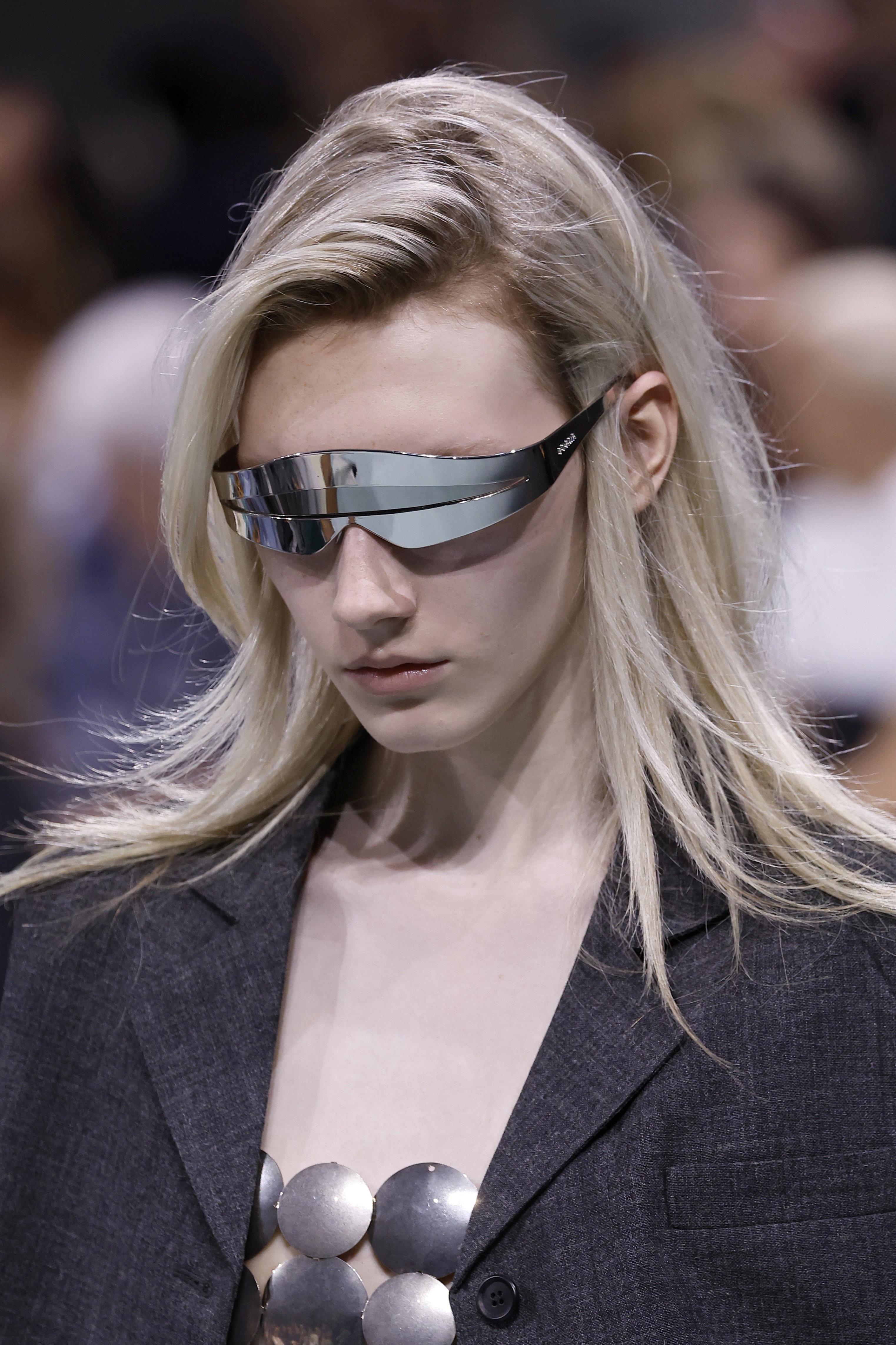 Не знаем, в чем особое очарование желтого цвета — но в 2025 году в него окрасили буквально каждую вторую солнцезащитную оправу. Вероятно, преимущество желтого перед классическим черным кроется в желании разнообразить палитру защитных очков, а также в том, что светло-желтый не закрывает глаза полностью. Кроме того, желтые стекла были популярны раньше, так что снова имеем дело с ретро-стилем. Тенденцию подхватили главные трендсеттеры Miu Miu, а за ними подтянулись и другие.