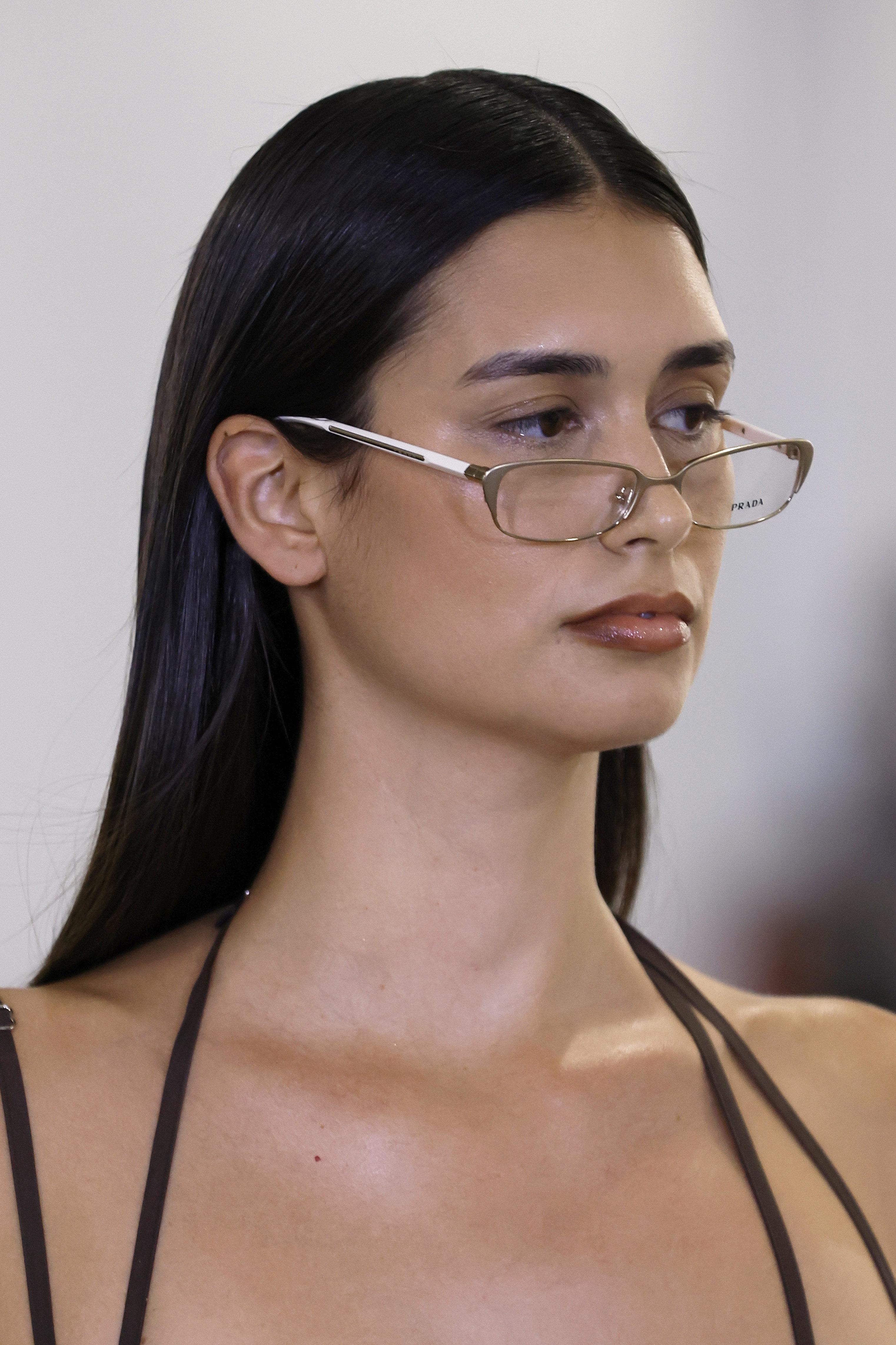Это, конечно, cat eye, которые уже упоминались в нашей подборке. Что может быть привлекательнее, чем узкие и вытянутые очки, делающие взгляд более загадочным? Второй свежий тренд на 2025 год — nerdy glasses, или «очки зануды». Это те самые оправы, которые обычно носят, когда «выглядеть сексуально» — последний пункт в списке задач. Речь о прозрачных очках непримечательной прямоугольной формы, обрамленных в прозрачную или невзрачную оправу. Отвечаем на вопрос, повисший в воздухе — сексуальным этот аксессуар стал из-за переосмысления самой философии сексуальности. Если раньше привлекательным фактором было обтягивающие платье и высокий каблук, то сейчас ставка делается на интеллект.