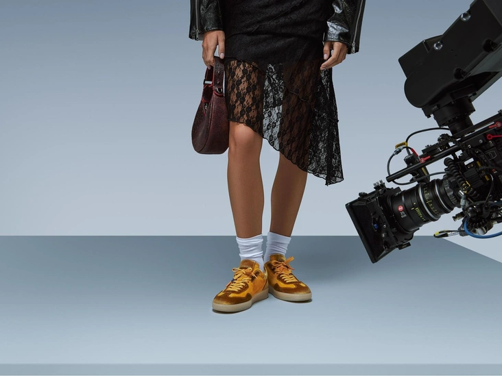 Центральное место в совместной коллекции заняли лаконичные лоферы, ботильоны, полуботинки, лодочки, сапоги-трубы, кроссовки в ретро стиле. Среди аксессуаров — шоперы, ремни и цветные перчатки разной длины. Модели выполнены в черном, коричневом, бордовом и горчичном цветах и в актуальных в новом модном сезоне фактурах: натуральной коже с деликатным блеском и бархатистом спилке.