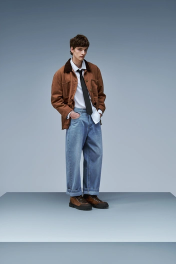 Мужская часть коллекции поддерживает неформальное настроение образов: лонгсливы, джемперы с молнией и без, свитеры и кардиганы в сочетании с брюками из комфортных материалов, в том числе денима и вельвета. Верхняя одежда из текстиля представлена разнообразными пальто актуальных форм, укороченными стегаными куртками и бомберами.