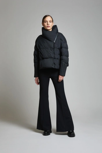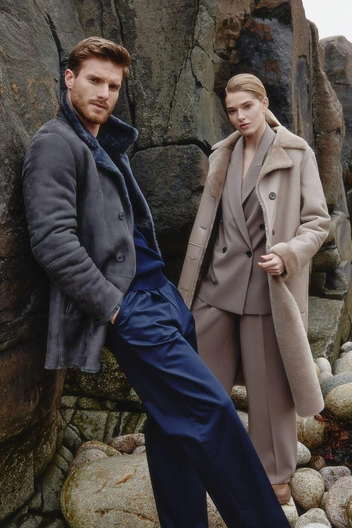 В центре внимания новой коллекции пуховики со скульптурными объемными формами, блестящими молниями и вышивкой, пальто и манто из экомеха, пальто оверсайз из дорогостоящих тканей, смеси кашемира, ангоры и шерсти мериноса. Конечно же, бренд добавил в коллекцию легендарное длинное черное пальто, которое придает женскому силуэту таинственность и соблазнительность. Роскошные дубленки олицетворяют наследие компании.